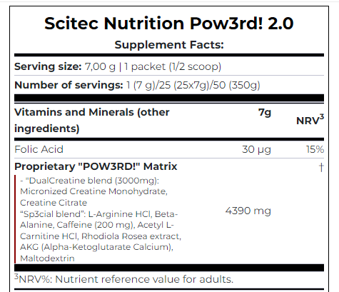 POW3RD 2.0 представляет собой сложную формулу из 10 тщательно отобранных активных ингредиентов. Вы действительно не можете знать, что он может сделать для вас, пока вы не попробуйте! В Pow3RD 2.0 есть смесь"DualCreatine" в научно доказанной дозе, для повышения производительности и интенсивности упражнений, как при работе с весами так и при кардио нагрузках. AKG, альфа-кетоглютарат является неотъемлемым компонентом цикла Кребса, который является энергетическим циклом генерирующим в организме. L-аргинин является условно незаменимой аминокислотой предшественником оксида азота (NO). Дополнительное использование аргинина является общей практикой среди спортсменов, культуристов. Экстракт гинкго билоба являются одними из самых продаваемых растительных ингредиентов, поскольку они могут способствовать оптимальной умственной деятельности. В Pow3RD 2.0 все ингредиенты, также используются по назначению.