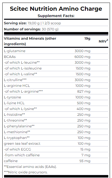Более того, аминокислоты ВСАА составляют примерно 35% от мышечной массы и необходимы для роста и развития на молекулярном уровне. L-глютамин является наиболее распространенной аминокислотой в крови человека. L-Глутамин и L-аргинин могут стать условно незаменимыми в определенных ситуациях, в том числе после интенсивной тренировки, когда организм не может удовлетворить свои потребности путем синтеза этих аминокислот. Будучи единственным предшественником оксида азота (No) и важным предшественником креатина, добавка аргинин очень популярна среди спортсменов, бодибилдеров. Для обеспечения производительности аминокислоты дополнены тремя граммами цитрулина.